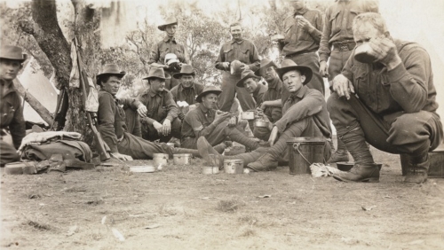 “This is strange weather. One day we are shivering with cold; the next we have to hide in our tents and shut up every space to keep out the dust, and then was are gasping with the heat. Yesterday was a real scorcher, and as luck would have it it was our day for a swim. Every other time we have struck icy cold days, and it has been a quick jump in, and run for your towel; but yesterday was ideal. The swimming bath is not very big, and with 200 men in it it is worse than a crowded ballroom… The day the mail arrives is most amusing. Everyone has letters, and they read out bits aloud. Thus we got local information about the price of potatoes at Capel, the starters for the Greenbushes Handicap, and the winner of the Pingelly Cup etc. etc.”