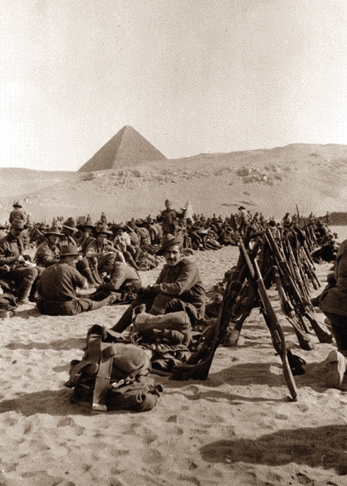 no1 general camp mena awm P11294December 1914 – The 11th Battalion has just arrived in Egypt and making their way to Mena Camp in the shadow of the Sphinx and the Pyramids.