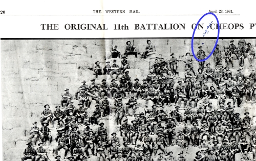 In 1931 when The Western Mail published a copy of the 11th Battalion Cheops photo in their Anzac Day issue, Dick’s family marked his position in the photo and kept the page as a reminder of their much loved brother. However, it’s somewhat surprising that Dick was actually photographed that day on the pyramid, for in a letter to his younger brother Harry, written the following week he revealed