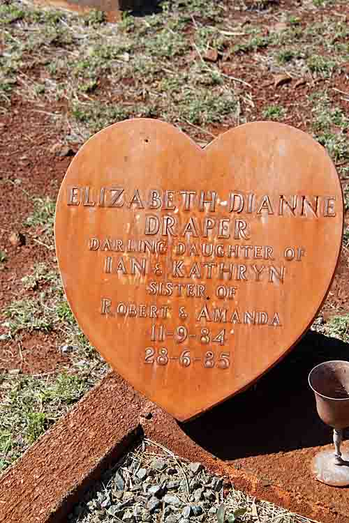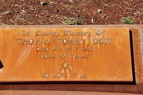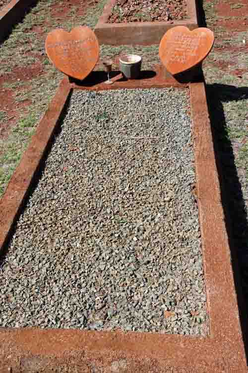 Resting Places: Akaroa near Koorda, Argyle Downs Homestead, Bardoc No 1 Cemetery, Broad Arrow Kurawah Cemetery, Denham River Station, Freshwater Camp Cemetery Denham (now Pioneer Park), Gullewa Cemetery, Hawthornden Estate Toodyay, Ivanhoe Station, Lady Harris Mining Lease, Milly Milly Station Cemetery, Mt Newman Cemetery, Nabberu, Onslow Pioneer Cemetery, Shark Bay, Turner River Station, Uaroo Station, Widgiemooltha Cemetery